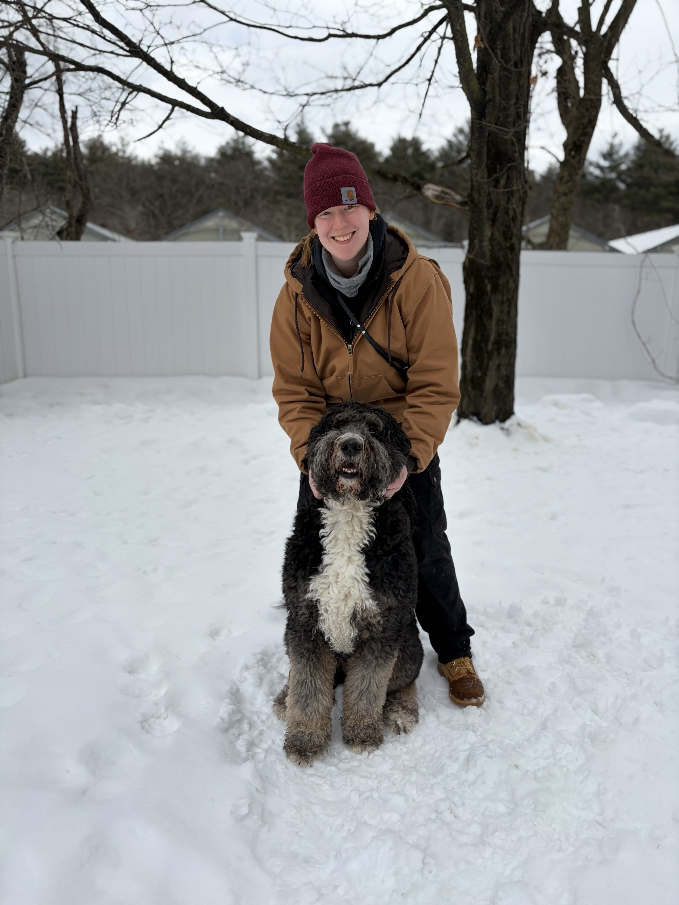 Claudia’s love and respect for dogs began at a very early age. She has always loved spending time around dogs and teaching them tricks. Claudia also has a passion for visual and performance art. After attending the State University of New York (SUNY) at New Paltz for two years towards a degree in Theatre Arts, she transferred to SUNY Cobleskill to study Canine Training and Management. After just one semester, it was clear Claudia found the career path she always wanted! During her free time she enjoys composing digital drawings of dogs, including She's a Keeper clients! Claudia is excited to complete her internship with She's a Keeper and see where the wonderful world of dogs takes her next! Here she is pictured with our amazing client, Bogey!